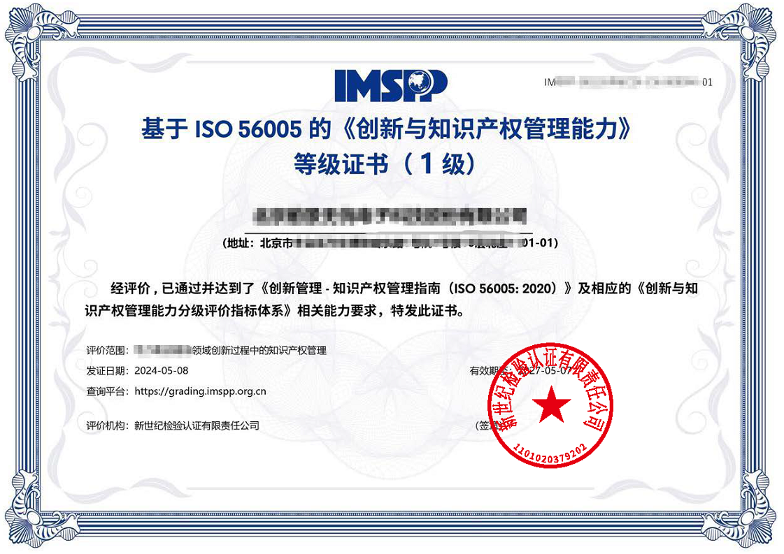 ISO 56005证书样例